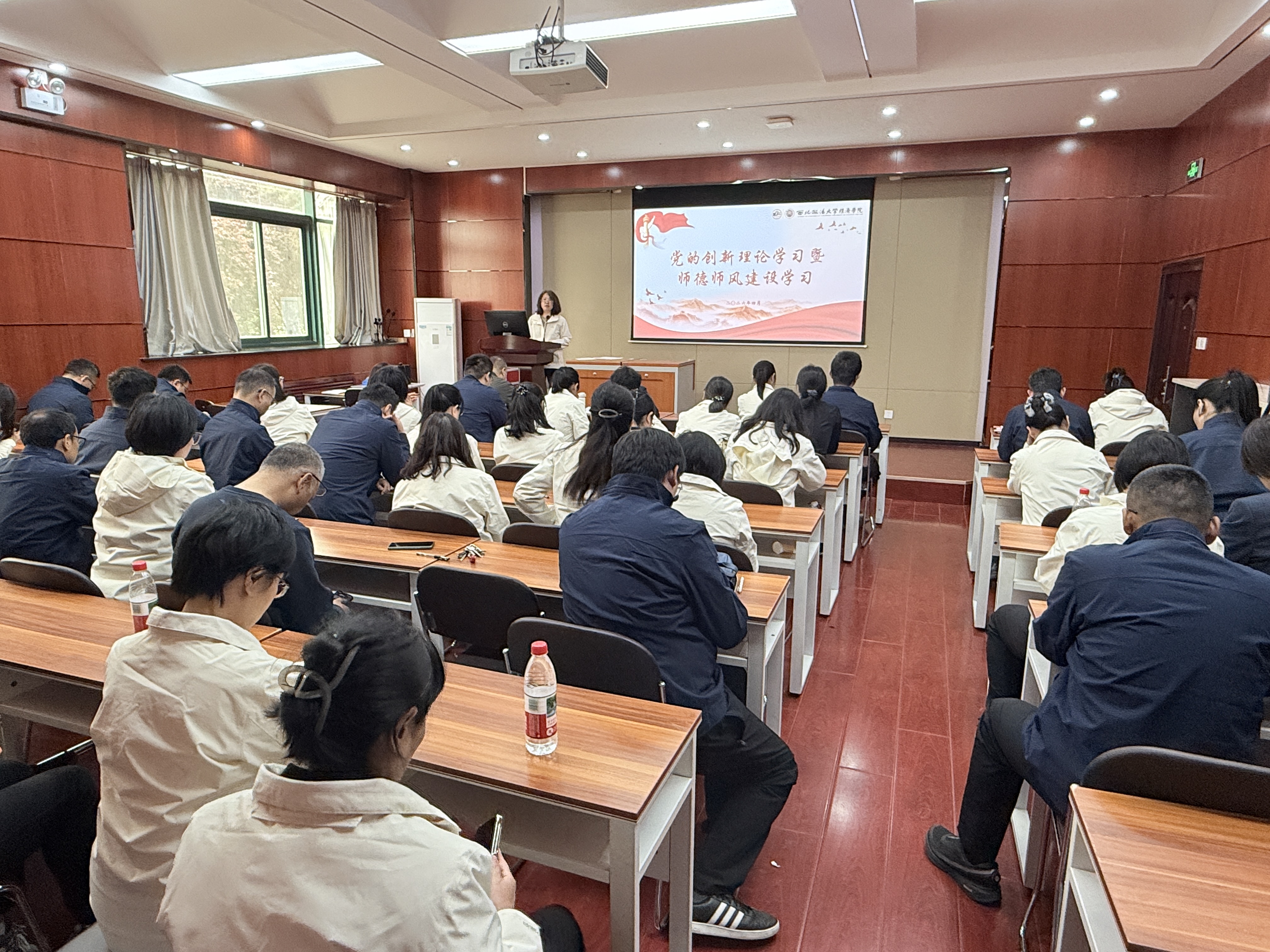 为持续强化教师思想政治引领,夯实师德师风建设根基,4月22日,经济学院在长安校区天平楼B100教室召开党的创新理论学习暨师德师风建设学习会,学院党委书记李建梅主持会议,全体教职工参加会议。