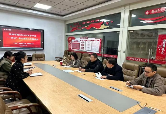 为深入贯彻落实教育部和学校关于“一站式”学生社区综合管理模式建设的部署要求,促进学生社区建设提质增效,近日,经济学院在关天会议室召开2025年秋季学期“一站式”学生社区工作推进会。学院领导班子成员出席会议,负责“一站式”学生社区的辅导员参会,会议由学院党委副书记侯颖怡主持。