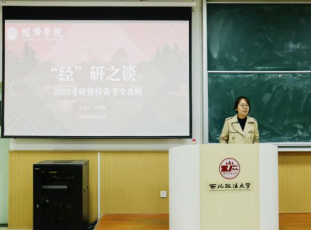 为帮助经济学院学生明晰2027届考研备考方向,科学规划择校与复习路径,破解择校迷茫、备考无章等难题,3月29日,经济学院在天平楼A座AJ32举办《“经”研之谈——2027年考研择校备考全攻略》考研规划指导分享会。本次活动由2023级辅导员刘佳主持,特邀西北政法大学职业生涯规划导师刘羽西开展专题分享。