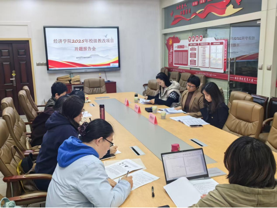 开题论证会邀请了高教研究所宋鸿雁研究员、郭艳利副研究员,以及马克思主义学院副院长鲁洋担任专家,经济学院副院长徐梅主持,我院4个项目负责人参加了本次开题报告会。