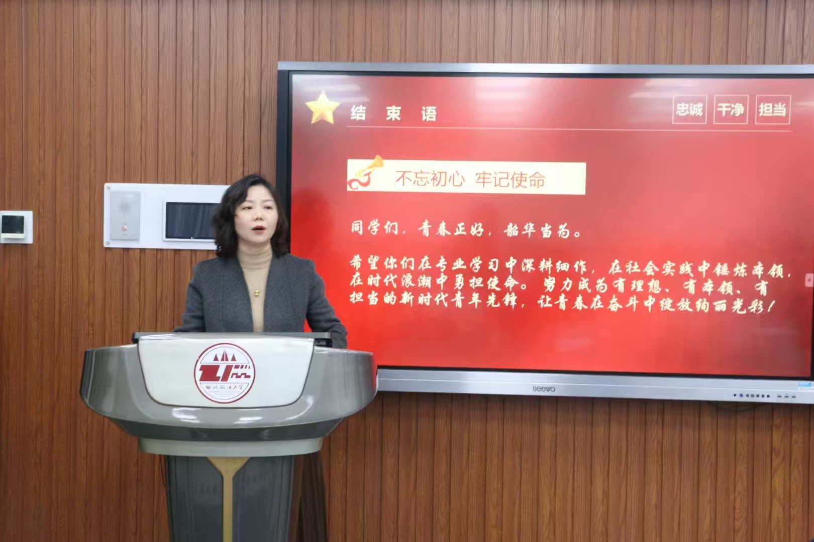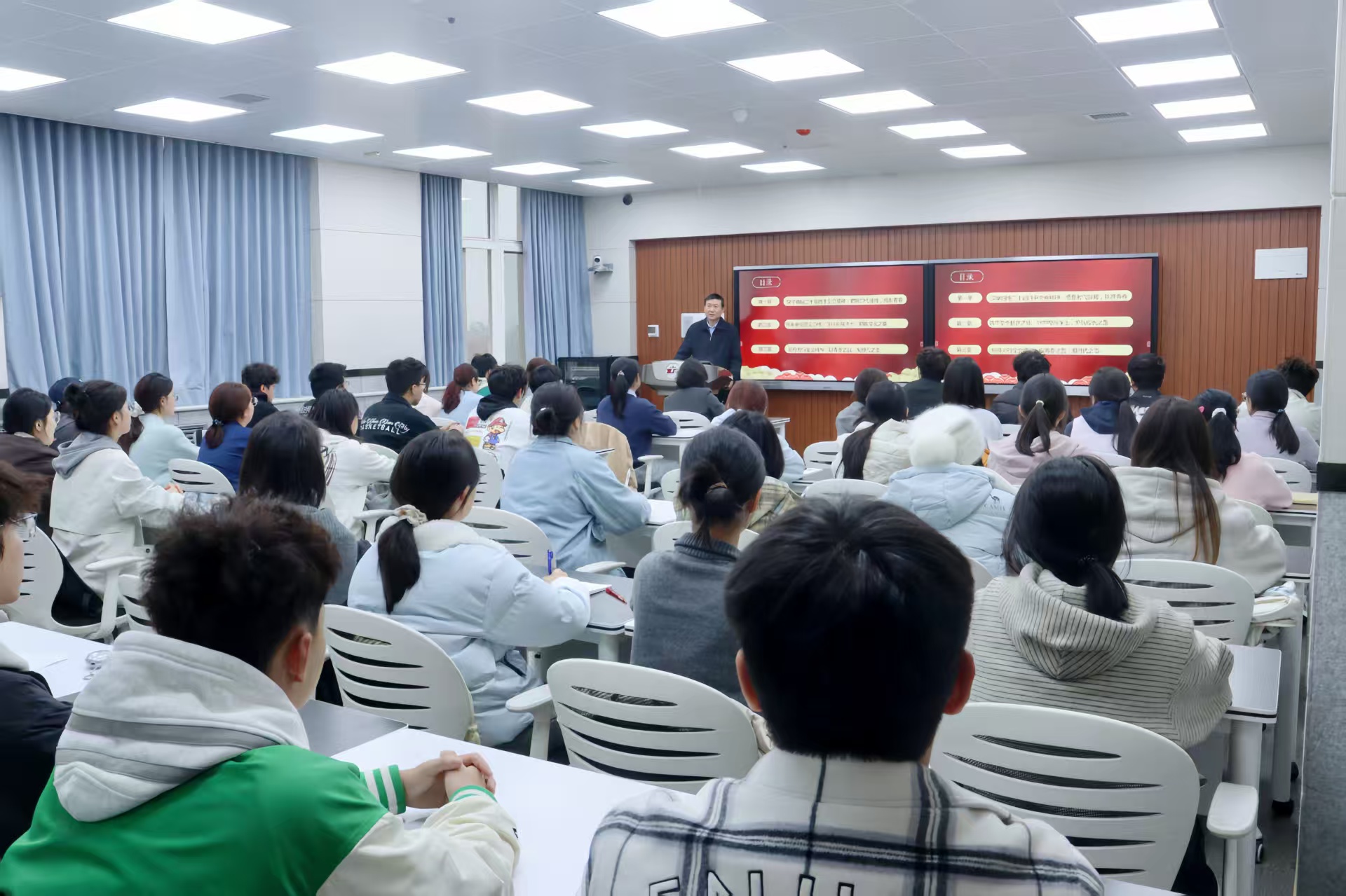 他强调,要深刻领会全会关于统筹发展和安全的战略部署,筑牢思想防线、严守行为规范、扛起责任担当,争做校园安全的维护者与建设者,共同营造良好的校园氛围。最后,他鼓励同学们自觉将个人理想融入国家发展大局,筑牢信仰之基、厚植家国情怀,深耕专业领域、增强实践锻炼,努力成为有理想、有本领、有担当的新时代青年先锋。