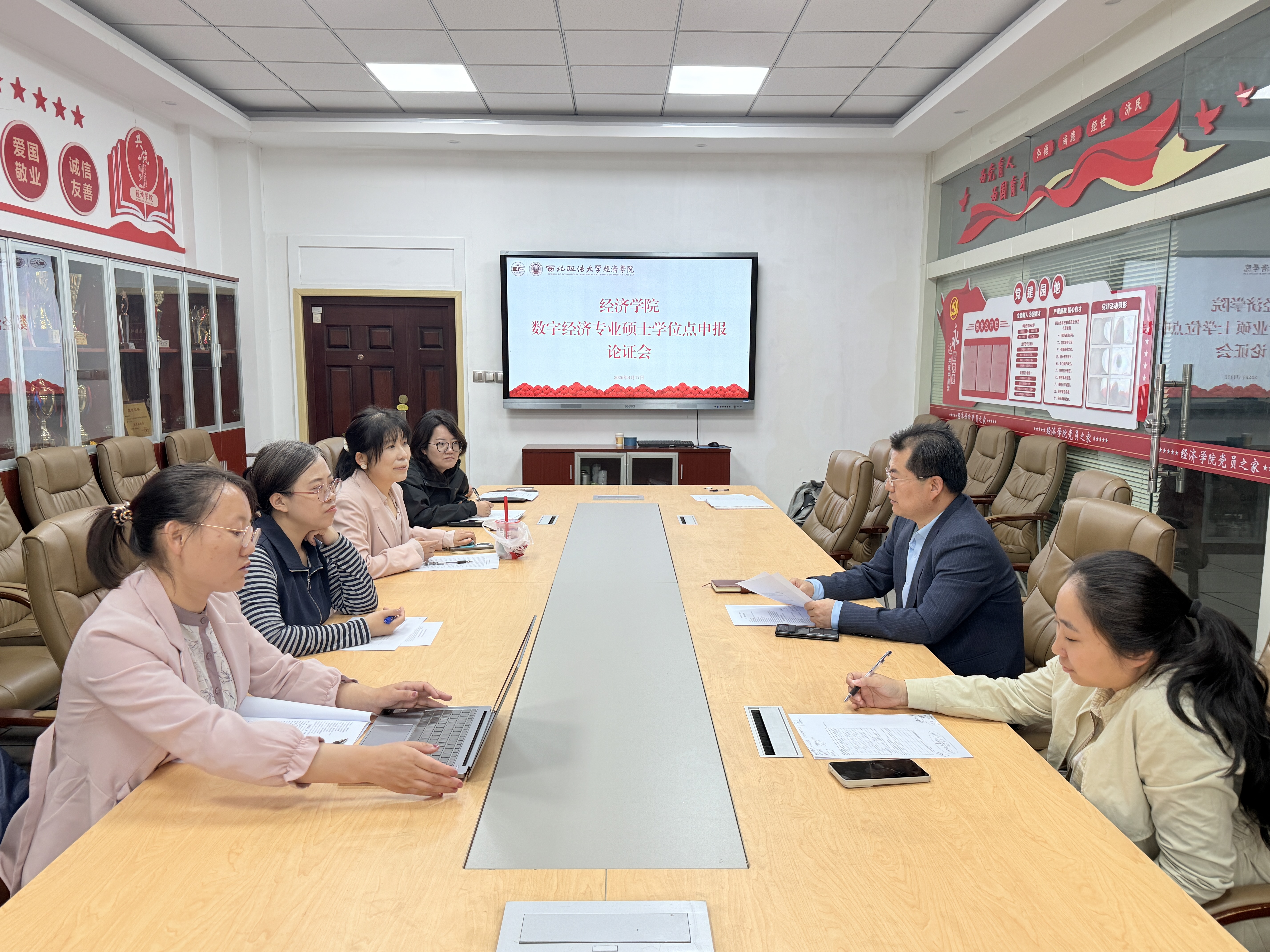 2026年4月17日,经济学院在关天会议室组织召开数字经济专业硕士学位点申报推进会,王胜利院长主持会议,学院数字经济专硕建设团队全体成员参会。