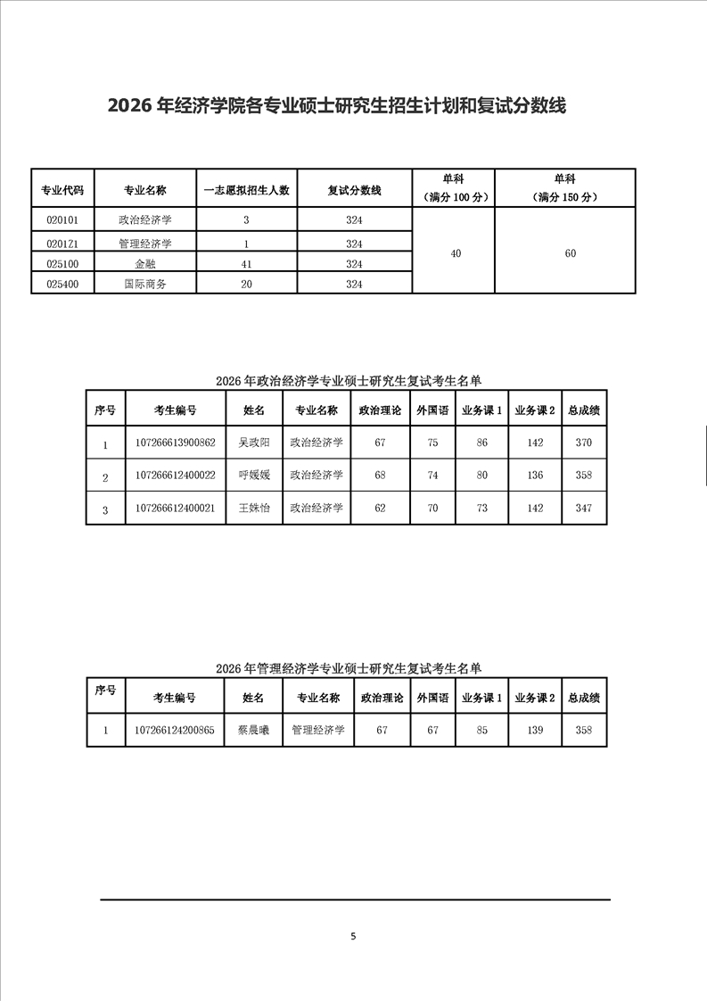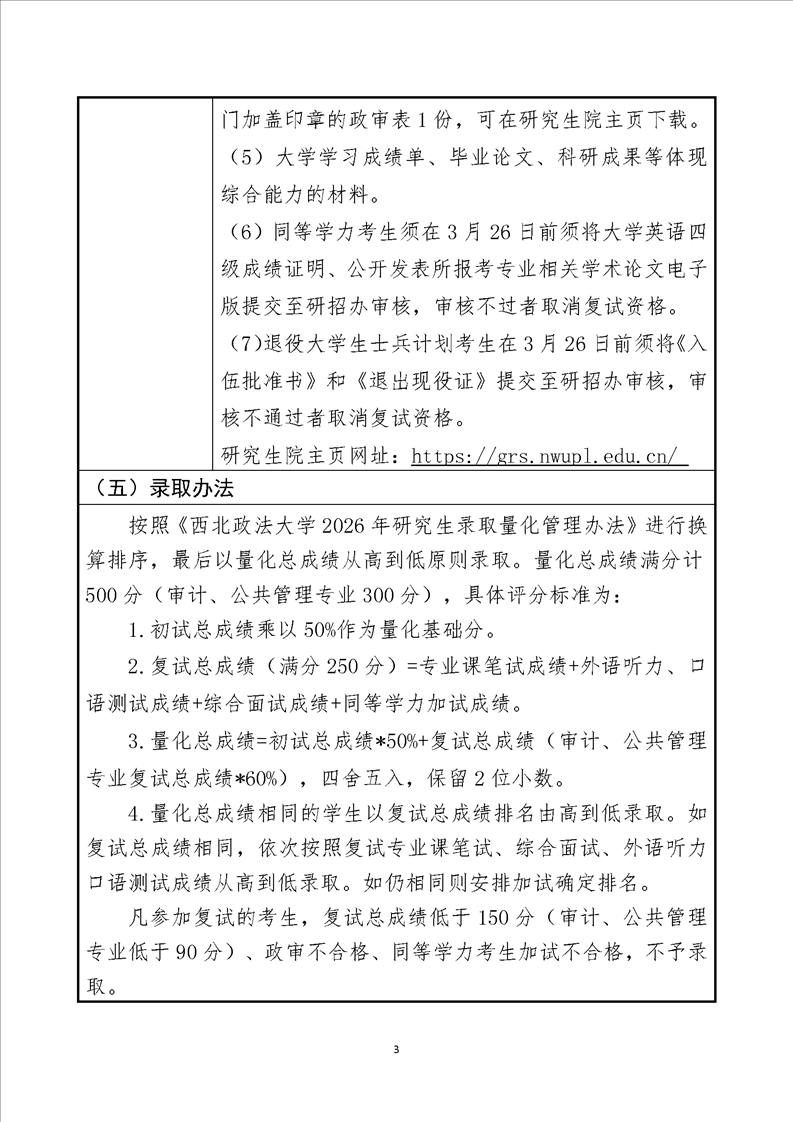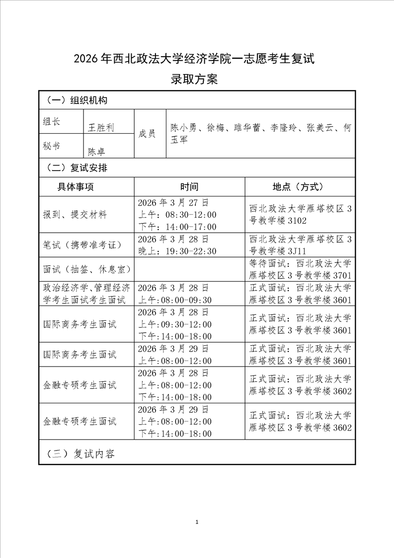 2026年西北政法大学经济学院一志愿考生复试 录取方案